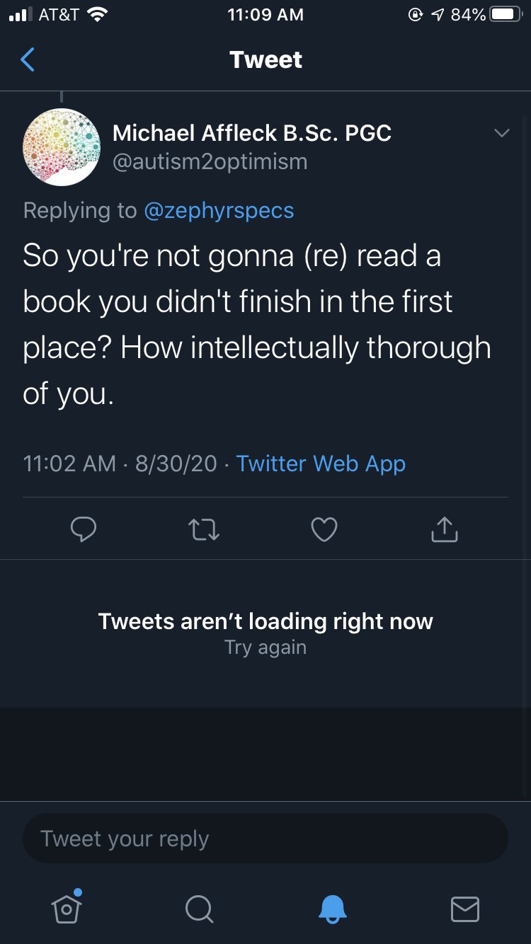 I’m here to say that attitude is inherently ableist. But to give the benefit of the doubt, perhaps most people don’t know that bipolar disorder actually can affect your ability to read. I learned to read early as a child — I was a prolific consumer of text, and I had a college reading level in elementary school (this is called hyperlexia). But after being medicated for bipolar disorder, my ability to sustain focus and momentum while reading a long document has been very limited.
