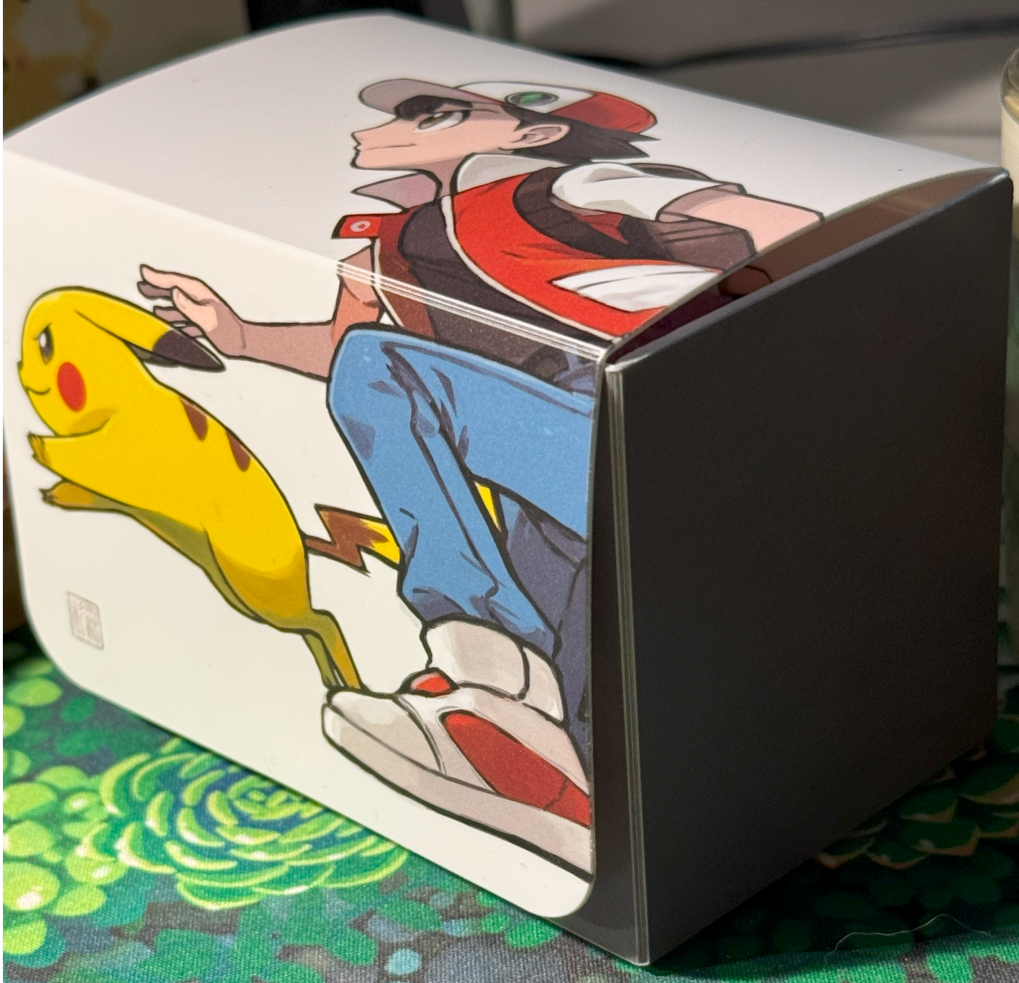 This one is also related to Pokémon! It’s a Japanese deck box. One of my favorites, so it seems fitting I put some stim tools in there. If you’re not familiar with deck boxes, they are generally not too large. I think this one is around 3 in (height) x 3 in (depth) x 4 in (width). The NeeDoh Nice Cube just fits inside.